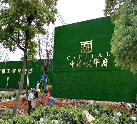 圍擋草坪,一般是指在鐵皮、彩鋼板、水泥墻、磚墻等圍擋上粘貼人造草坪,在此基礎(chǔ)上設(shè)置廣告字標(biāo)語等,具有綠色環(huán)保、吸音防塵等功能。
